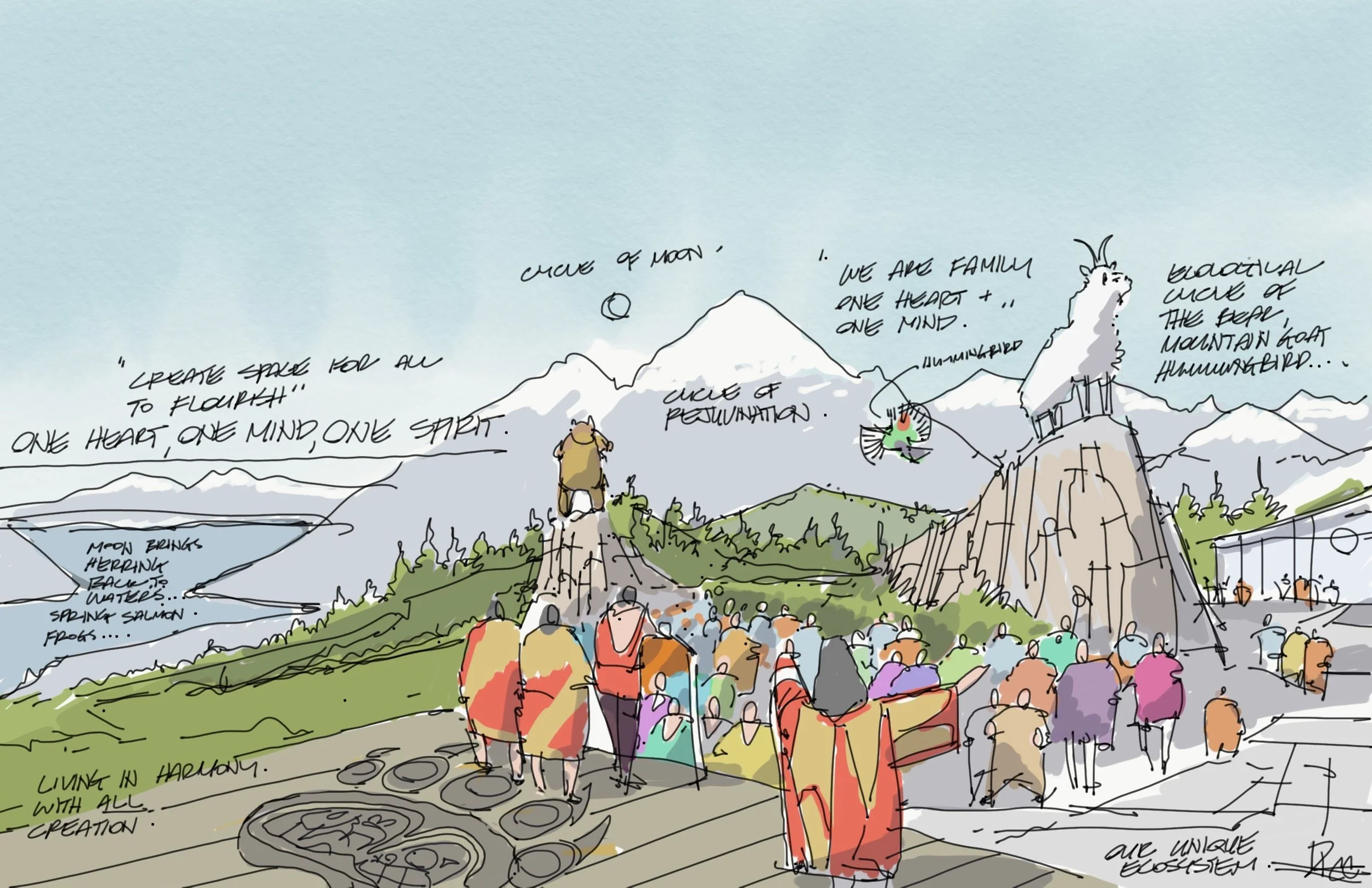 Sḵwx̱wú7mesh tradition invites guests from near and far to witness celebrations and ceremonies. The act of being a witness is the act of sharing support and being present with an open mind and heart. The resort presents an opportunity to gather for special events, ceremony, and celebration as an active partner in supporting the resurfacing of traditional Sḵwx̱wú7mesh culture.